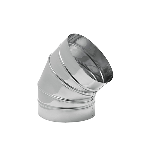 Curva en acero inoxidable 45º para conductos de humos acabado brillo.